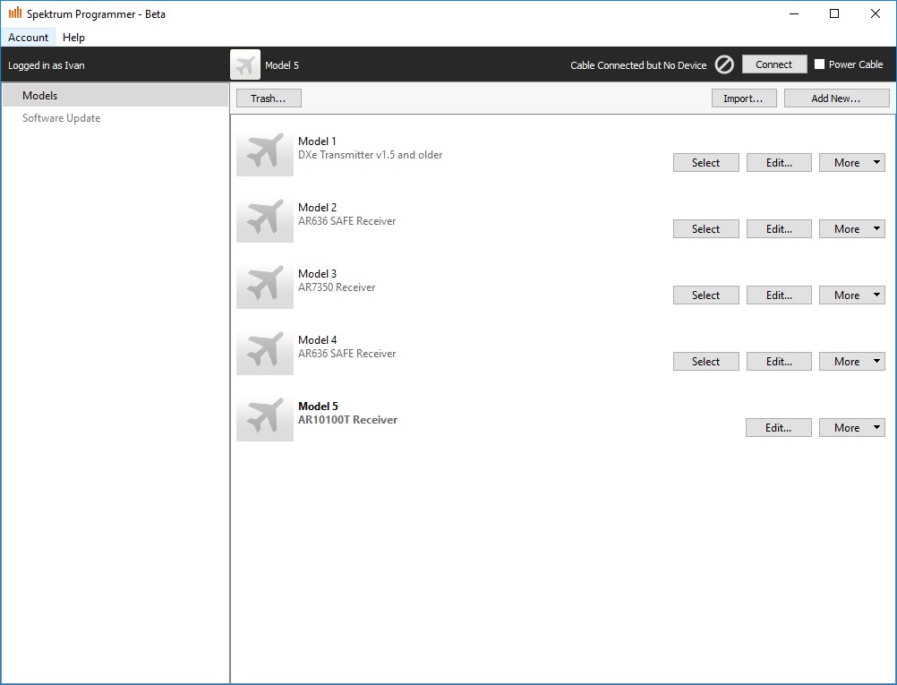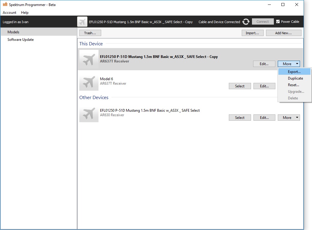 Nově lze do nových Smart RC přijímačů Spektrum se stabilizací AS3X/SAFE nahrát hotová nastavení existujících RC modelů letadel značek E-flite, Hobbyzone, Hangar 9 a Parkzone od společnosti Horizon Hobby. V článku uvádíme podrobný postup a doporučení.
