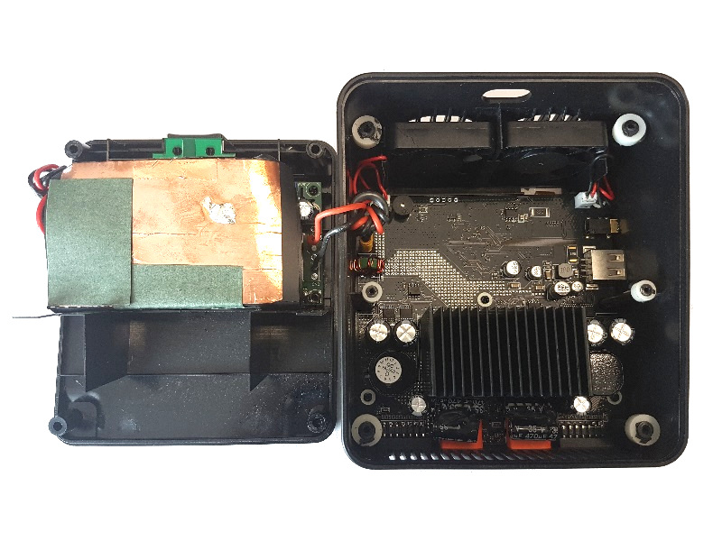 Jak bylo dosaženo tak malých rozměrů a hmotnosti? Bylo použito moderních měničů s hrníčkovými jádry pracujících na vysoké frekvenci. Tyto měniče jsou již běžnou výbavou základních desek počítačů, kde došlo v poslední době rovněž ke značné redukci jejich velikosti.