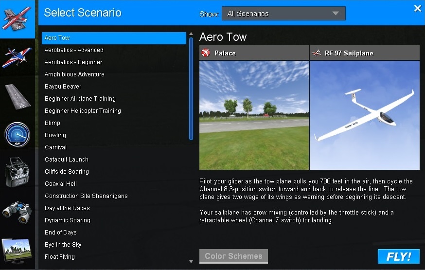 Simulátor umožnuje plnit letové výzvy s modely, které Vás zdokonalí v létaní. K dispozici jsou přednastavené výzvy pro letadla, vrtulníky i drony.