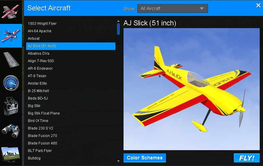 Select Aircraft - výběr modelu letadla / vrtulníku / dronu s podrobným popisem modelů