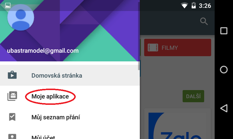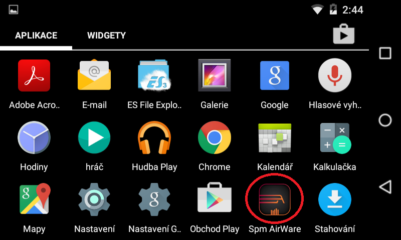 Nyní je máte menu aplikace SPM Airware v českém jazyce. (Český jazyk se nastaví podle výchozího jazyka Androidu)
