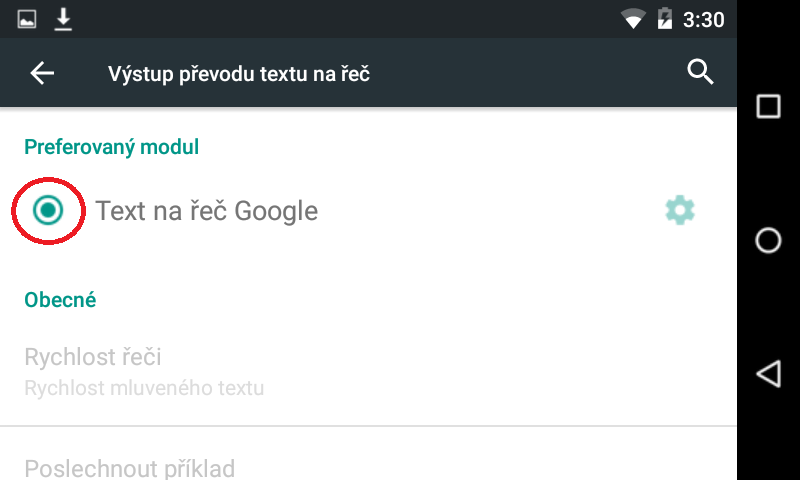 Pro české hlášení je nutné potvrdit následující možnost hlasového výstupu v nastavení vysílače: