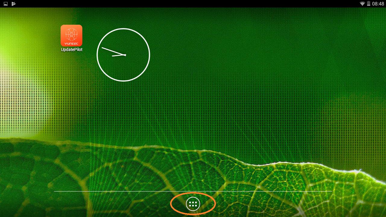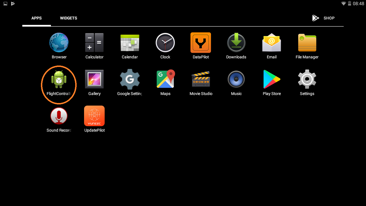 - Nyní se kliknutím na šipku zpět dostanete do menu tabletu, kde pod ikonou Menu naleznete seznam aplikací. Zde klikněte na FlightController.