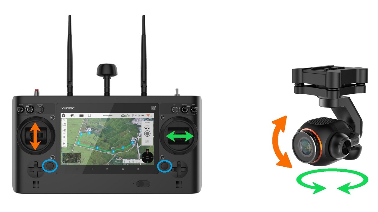 Nyní již můžete Master vysílačem ovládat dron a křížovými ovladači na Slave vysílači kameru. Pro optimální ovládaní kamery je vhodné mít Slave vysílač v módu 1.