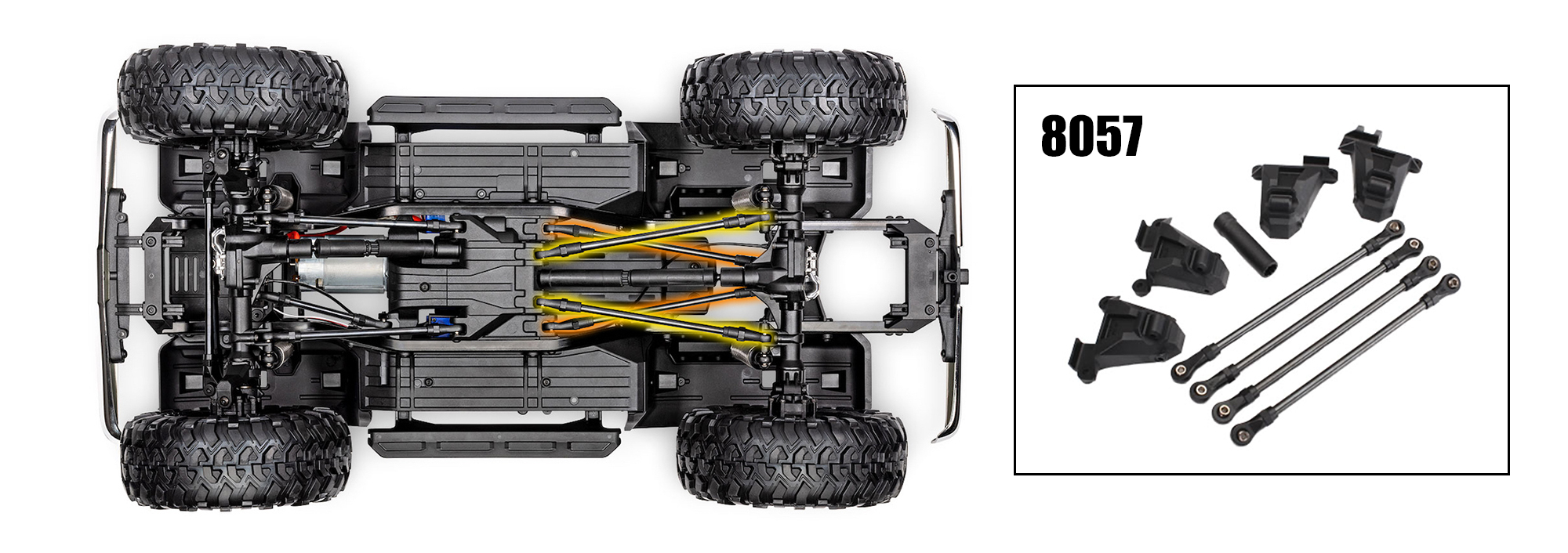 | TRA8057 | Konverzní sada | Obsahuje delší zadní táhla a hnací hřídel. |