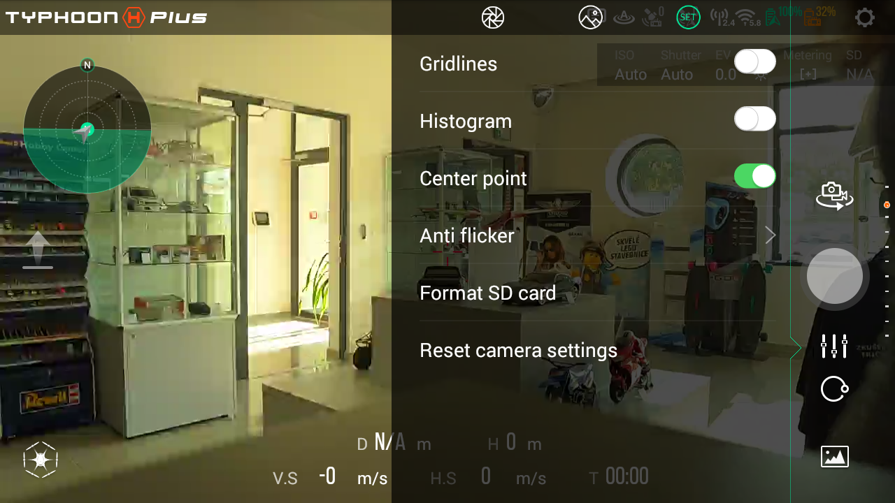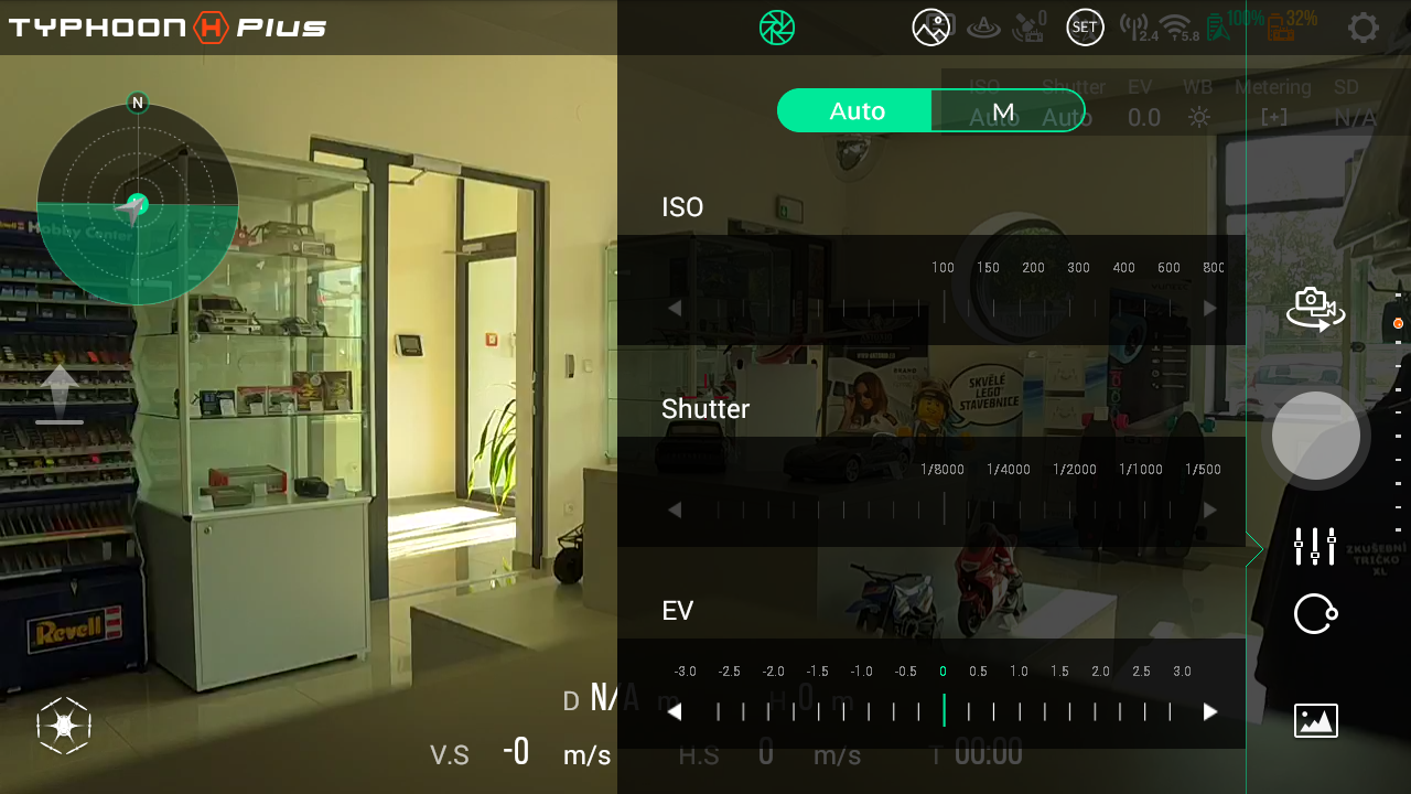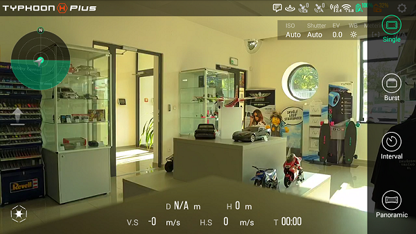 Ovládací funkce na přepínačích a jiných ovládacích prvcích zůstaly zachovány až na jednu novinku a to rotace kamery. Nyní máte dva manuální režimy ovládání gimbalu v rotační ose Yaw. První je rotace rychlá, kdy otočním potenciometru udáváte směr, ale kamera se ihned zastaví ve zvoleném bodě a při navrácení otočného potenciometru je kamera namířená na střed. Další manuální režim je stejný, jako má Typhoon H a to rotace nekonečná, podle udání rychlosti otočným potenciometrem. Co se týká přepnutí kamery do režimu náklonu směrem nahoru, tak nyní lze kameru namířit o cca +15 stupňů vzhůru.