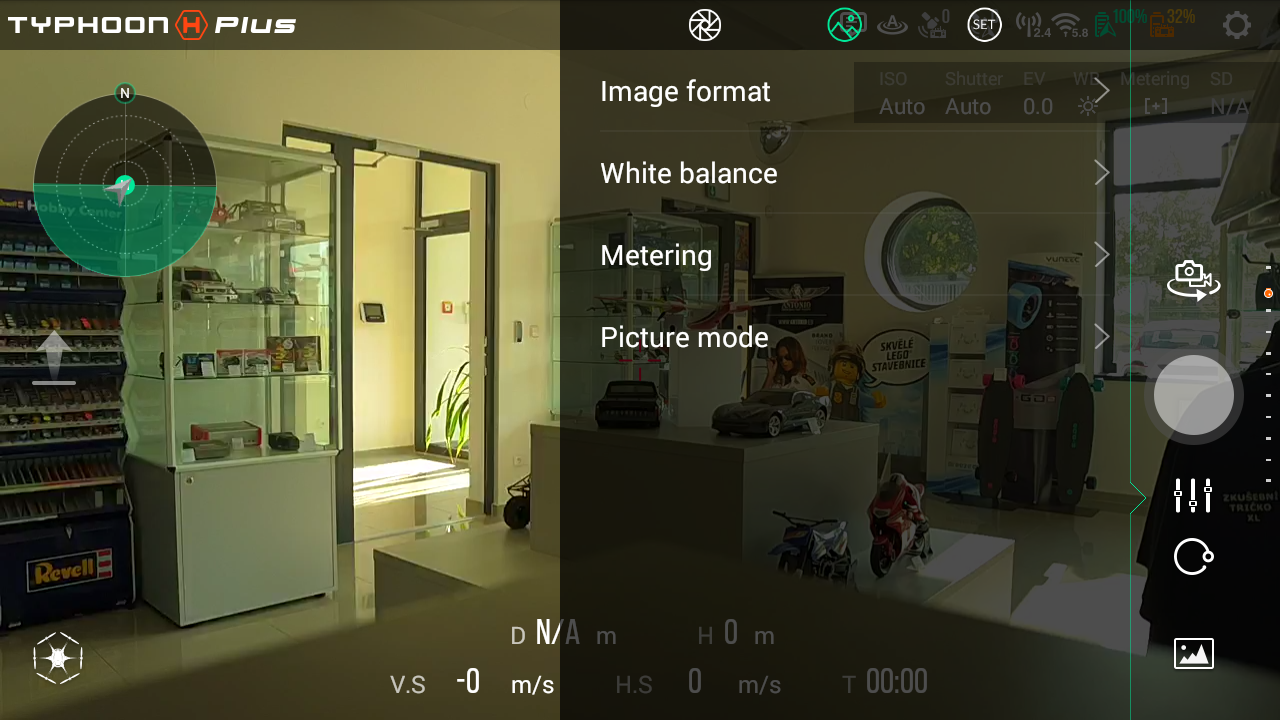 Co se týká letových režimů, tak Typhoon H Plus disponuje dvěma letovými režimy, které se přepínají v pravé části vysílače ST16S. V horní poloze je režim SPORT. Tenhle režim je se stabilizací + GPS, ale reakce na povely jsou pro sportovní lítání.