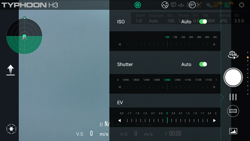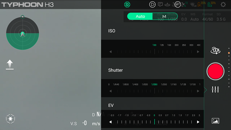 V režimu fotoaparát lze nastavit základní hodnoty ISO, Shutter a EV. Pro hodnotu ISO a Shutter můžete využít, jak automatický režim, tak manuální.