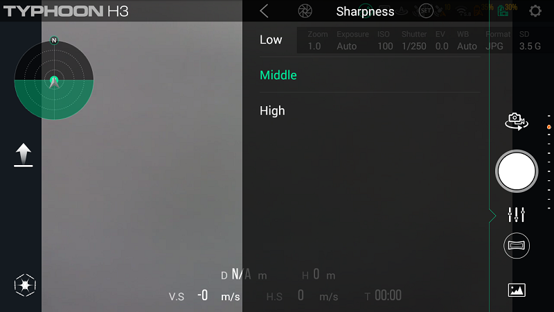 Ostrost snímání je měnitelná mezi nízkou, střední a vysokou.