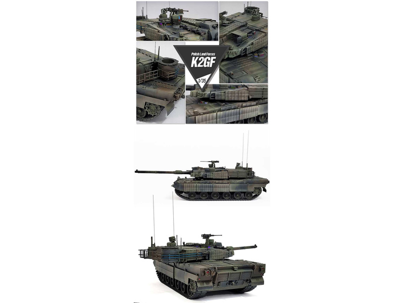 Plastikový model Academy 13560 - tank K2GF Polish Land Forces v měřítku 1:35 ke slepení. Obtížnost 4, délka 308 mm.