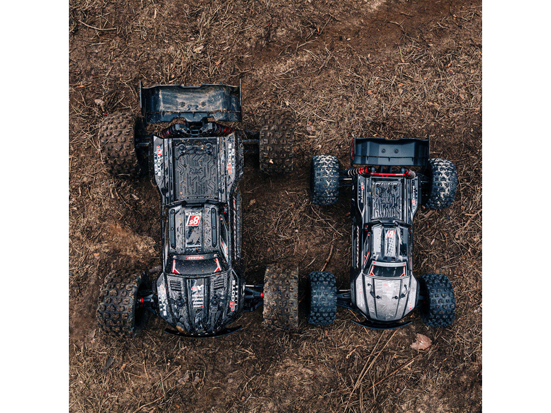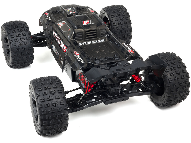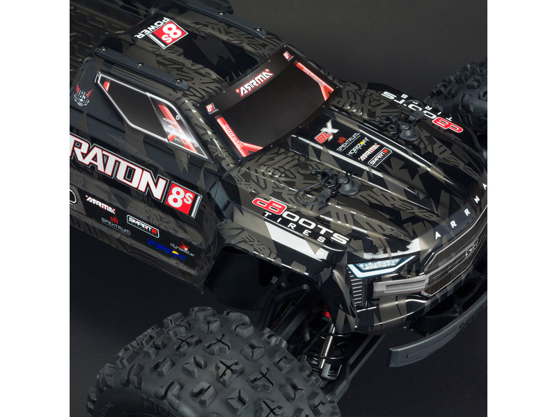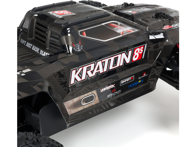 Náhradní díl pro RC model auta Arrma Kraton 1:5 4WD EXtreme Bash Roller/8S BLX: karosérie černá. Rozměry 593x277x168mm. Rozvor 491mm.