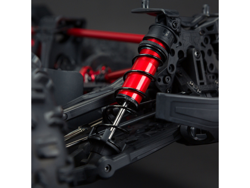 Arrma tlumič kompletní 20x178mm (2) - sestavený, naplněno olejem o viskozitě 700cSt. Robustní hřídel 6mm. Precizně vyrobené červeně eloxované tělo. Hřídel z nerezové oceli. Písty 8 děr s průměrem 1,4 mm. Připraveno pro osazení pružinami. Matice pro nastavení předpětí pružin.