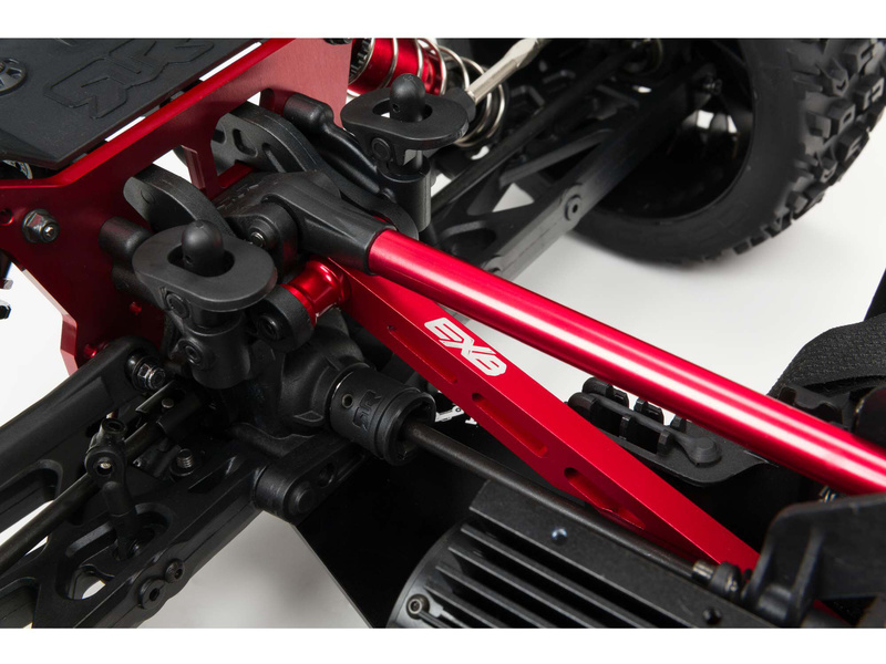 Náhradní díl pro RC model Arrma Kraton 1:8: držák nápravy přední horní, CNC hliník, červená.