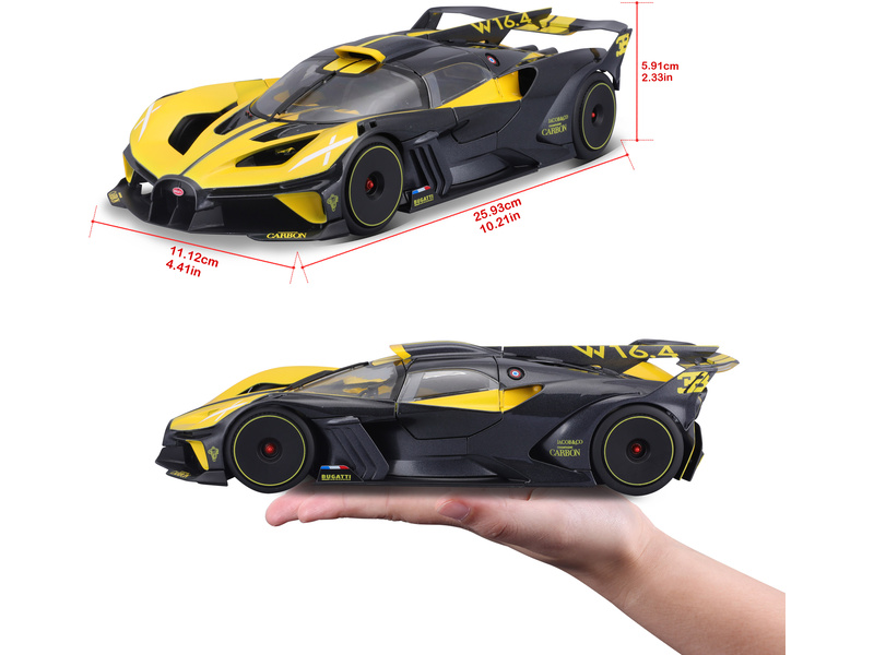 Hmotnost tohoto hypercaru byla snížena na 1245 kg, což je mimořádný výsledek vzhledem k tomu, že Chiron se blíží dvěma tunám a že samotný motor dosahuje 400 kg. Motor je čtyřturbo W16 o objemu 7993 ccm a výkonu 1850 koní s maximální rychlostí „hodně přes 500 km/h“. Točivý moment je fenomenální: 190 mkg. Výkon je ohromující: z 0 na 400 km/h za 12”1 a kapacita bočního zrychlení 2,8G. Hořčíkové ráfky nesou monstrózní slicky o rozměrech 34 cm vpředu a 40 cm vzadu a na druhou stranu váží jen 7,4 a 8,4 kg. Aerodynamika je velmi promyšlená a každý záhyb a každá hrana tu mají svůj účel.