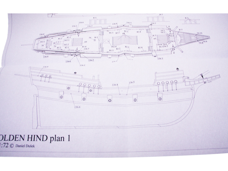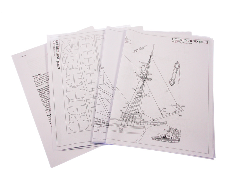 Sada předšitých plachet pro stavbu lodi - Dušek Golden Hind 1577 1:72.