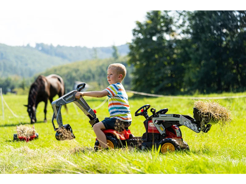 Díky mechanickému rypadlu naberete vše co potřebujete a vyhloubíte jakoukoliv díru. Rypadlo má důmyslný ovládací systém, kterým ho můžete ovládat z jednoho místa. Promyšlená konstrukce dětského traktoru zajišťuje snadné ovládaní i těžšího nákladu.