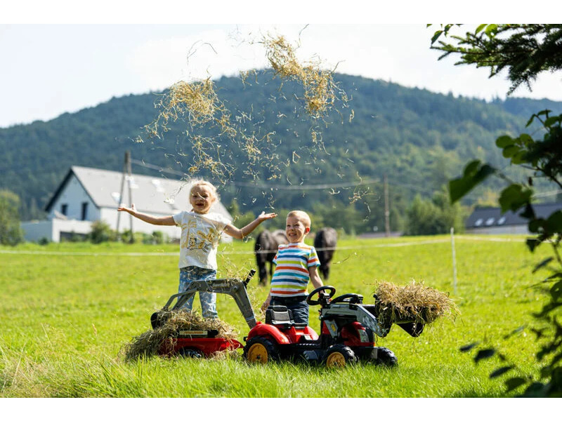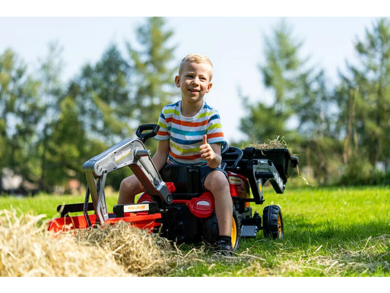 Dětský šlapací traktor s mechanickým přední nakladačem s funkcemi jako skutečný bagr. Snadné ovládání a pevnost nakladače zajistí zvednutí plné radlice bez větší námahy.