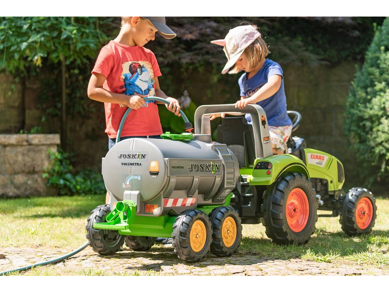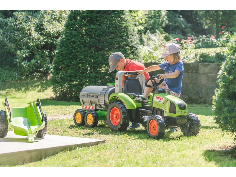 Šlapací traktor pro děti, značky FALK. Replika skutečného traktoru Claas Backhoe. Dětský traktor je vybaven předním nakladačem, rypadlem, Maxi vlečkou, otočným sedadlem a klaksonem pro nekonečné dětské hry. Určeno pro děti od 3 do 7 let.