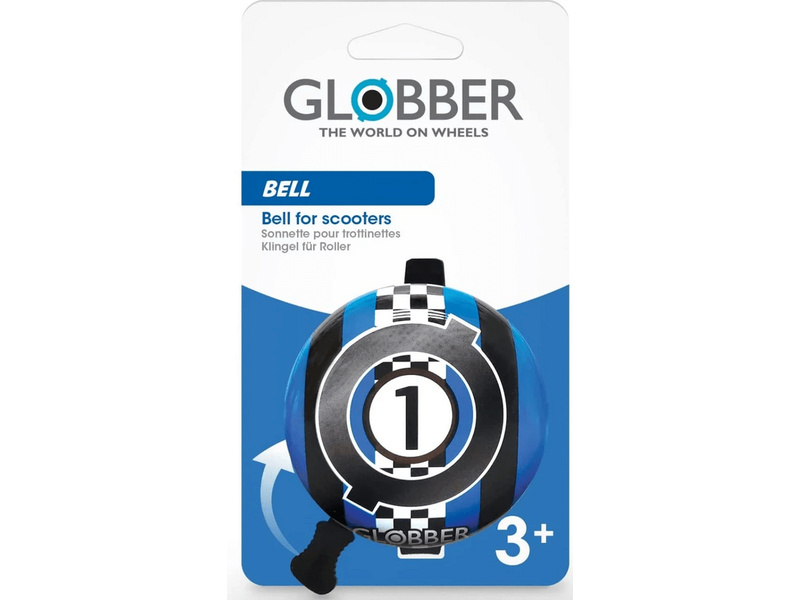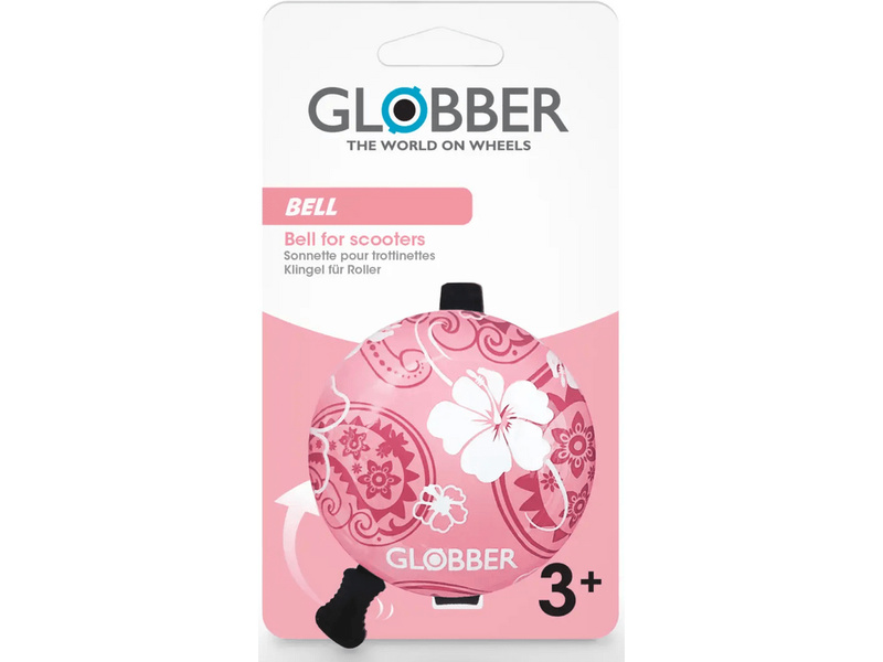 Dětský zvonek Globber na řídítka kola, či koloběžky. Umožňuje zvonit pomocí palce a bezpečně držet oběma rukama řídítka. Poutavý design s různými motivy.