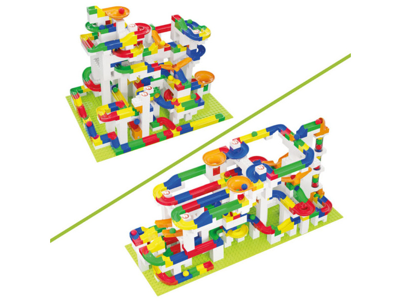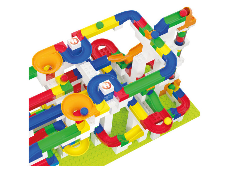 Kuličková dráha HUBELINO - Set s kostakmi Mega je pro děti skvělým společníkem. Poskytuje spousty zábavy a kreativity, podporuje logické myšlení i smysl pro detail. Můžete si poskládat dráhu podle přiloženého návodu nebo svou vlastní, ve fantazii se meze nekladou.