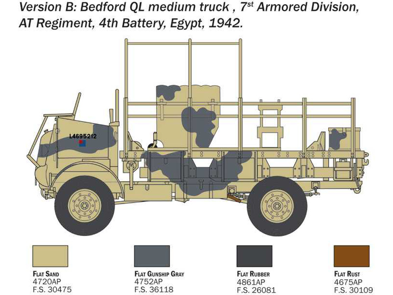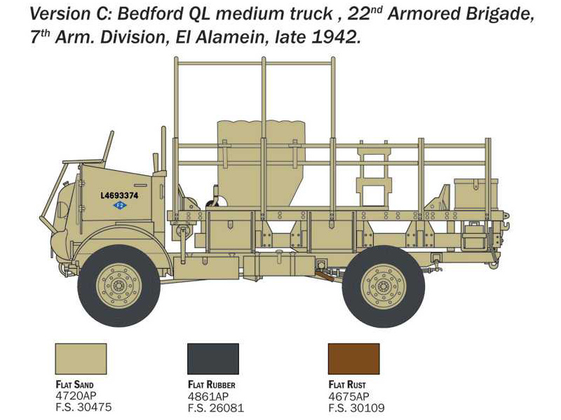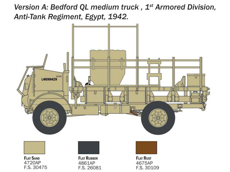 Řada vojenských nákladních automobilů Bedford QL vznikla koncem 30. let 20. století, aby britská armáda měla k dispozici modernější a flexibilnější dopravní prostředek. Po ukončení testů v roce 1940 a na začátku roku 1941 byly vozy Bedford QL distribuovány armádním sborům, plukům a dalším jednotkám. Po celou dobu války byl nasazován na různých frontách a díky pohonu všech kol a relativně nízké hmotnosti, která dále umocňovala jeho nosnost, se osvědčil jako velmi efektivní podpůrné vozidlo uspokojující logistické i přepravní potřeby. Díky jeho flexibilitě a robustnosti se používal také k vlečení a přepravě děl, jako byl šestiliberní protitankový kanón a 40mm protiletadlový kanón Bofors. Byl poháněn šestiválcovým benzinovým motorem o výkonu 72 koní a vyznačoval se také snadnou údržbou a opravami, což bylo na bojišti důležité.