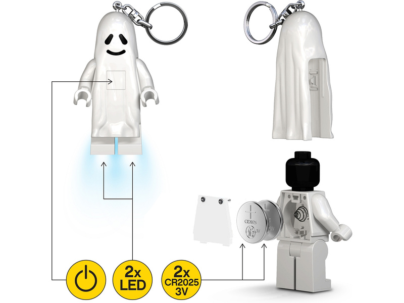 LEGO svítící postavička – Duch má pohyblivé paže, zápěstí a částečně i nohy, kde jsou umístěny 2 LED světla.