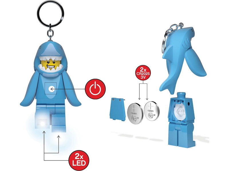 Postavička Žraloka jako LED svítící přívěšek na batoh nebo klíče. Sběratelské LEGO postavičky s tlačítkem na hrudi a LED diodami v nohách nesmí chybět ve Vaší sbírce LEGO figurek! Výška figurky je 7,5 cm, má pohyblivé ruce i nohy. Baterie součástí balení. Doporučený věk: 6+.