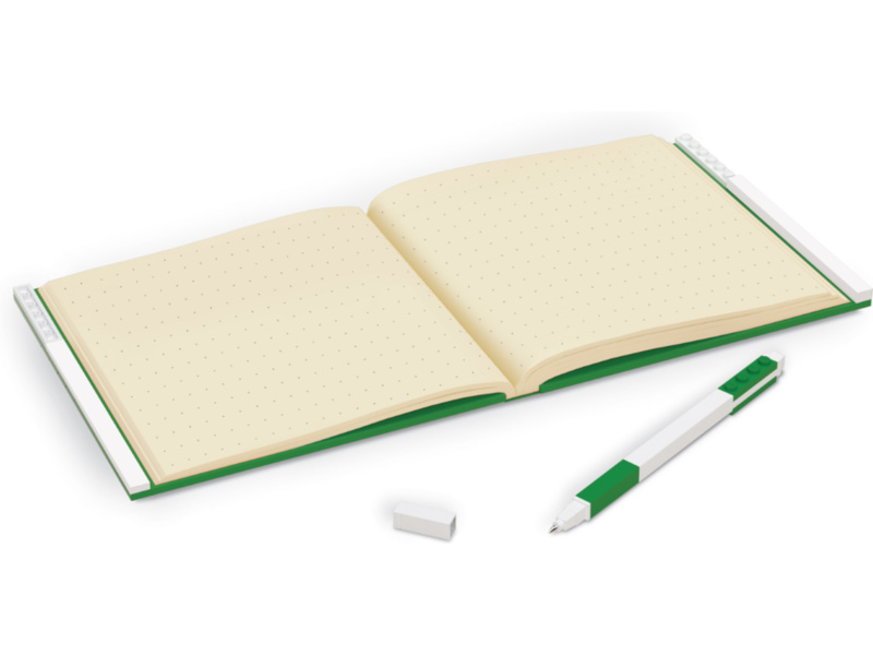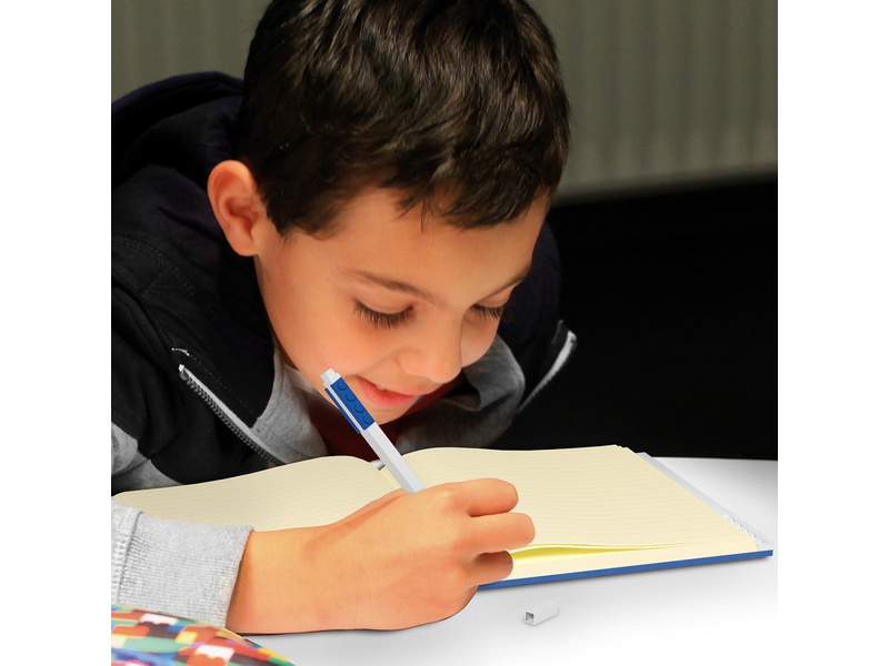 Stylový zápisník s PU potahem a reliéfní LEGO grafikou na deskách překvapí unikátním uzavíracím mechanismem. Celé LEGO gelové pero slouží zároveň jako zámek. Jediným cvaknutím přicvaknete pero k LEGO destičkám na kraji zápisníku, takže se zápisník bezpečně uzavře a pero máte vždy po ruce.