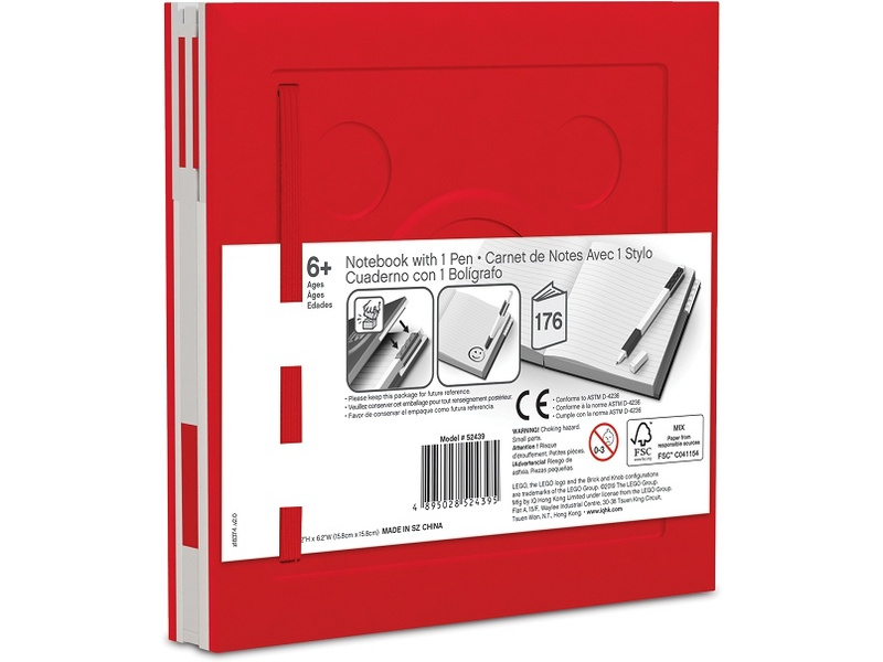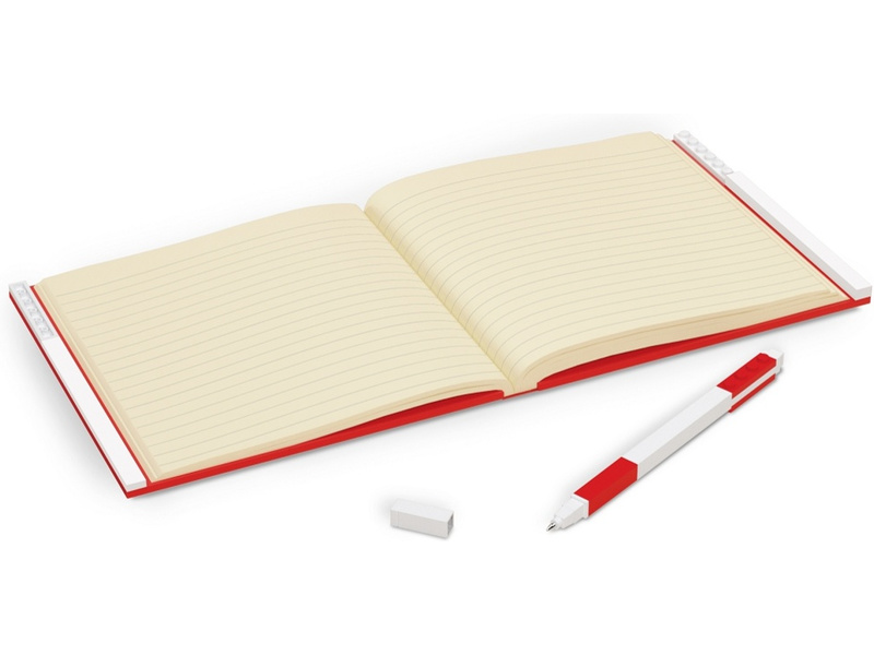 Nový LEGO zápisník - originální ze všech stran. Nechte se okouzlit reliéfní grafikou LEGO kostičky na přední i zadní straně zápisníku, přední i zadní předsádkou s retro designem a unikátním zavíracím mechanismem obsahujícím LEGO gelové pero.