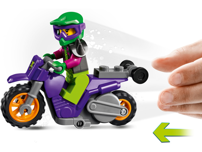 Se stavebnicí Kaskadérská wheelie motorka od LEGO® City (60296) si děti užijí hodiny akční zábavy. Čeká na ně parádní model motorky, se kterým mohou jezdit po jednom kole a předvádět kaskadérské kousky ve vzduchu. Nebojácná hvězda televizního seriálu LEGO City Dobrodružství, kaskadérka Raze, pak zaručí, že vás čeká dechberoucí show, na kterou jen tak nezapomenete!