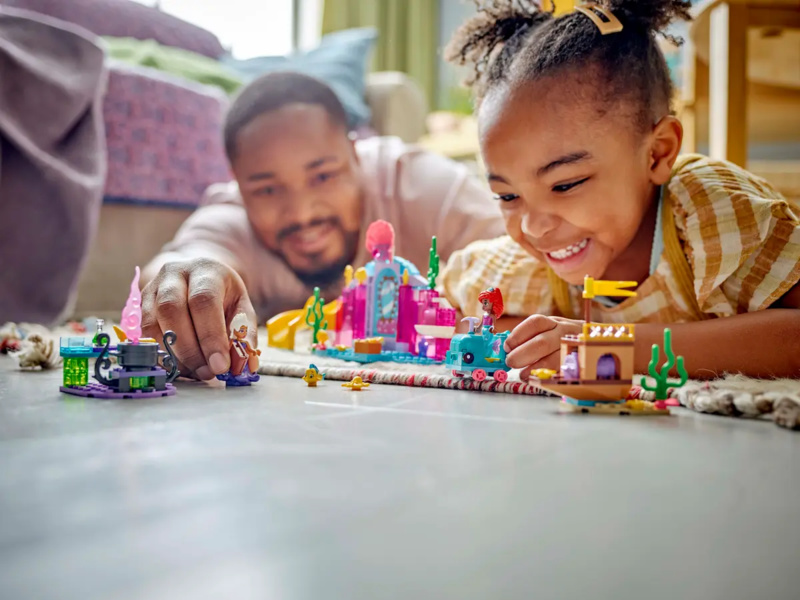 Děti od 4 let se mohou těšit na dobrodružství plná objevování a hraní při stavění sady LEGO® ǀ Disney Princess (43254) Ariel a její křišťálová jeskyně. Tato stavebnice s mořskou pannou pomáhá dětem rozvíjet schopnost řešení problémů kreativním hraním. Uvnitř najdete jeskyni s otočnou plošinou a skluzavkou, velrybí vozidlo, vrak lodi s truhlou s pokladem a kotel. Součástí jsou také minipanenky LEGO ǀ Disney Uršuly a Ariel a figurka LEGO ǀ Disney ryby Šupinky.
