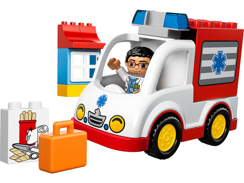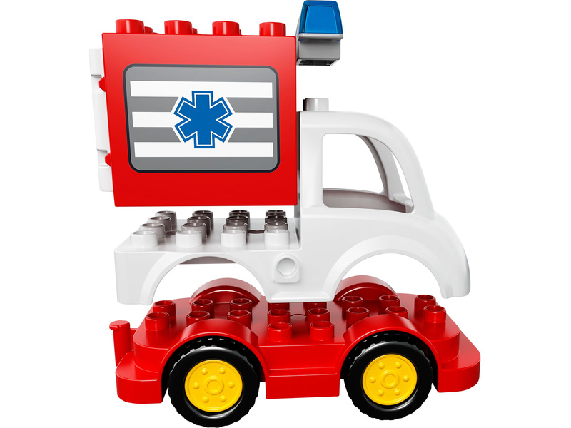 Stavebnice LEGO DUPLO Ville - Sanitka 10527 je určena pro děti od 2 do 5 let, obsahuje 14 dílků.