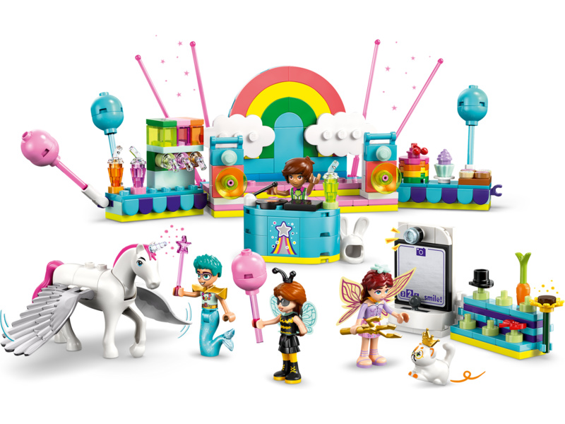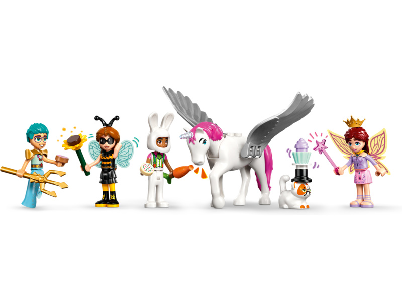 Stavebnice LEGO® Friends (42661) Kostýmová párty s jednorožcem a vílou pro holky a kluky od 6 let obsahuje 4 minipanenky LEGO Friends, figurku kočky a figurku koně a nechybí spousta roztomilých párty doplňků, které inspirují k zábavnému hraní.