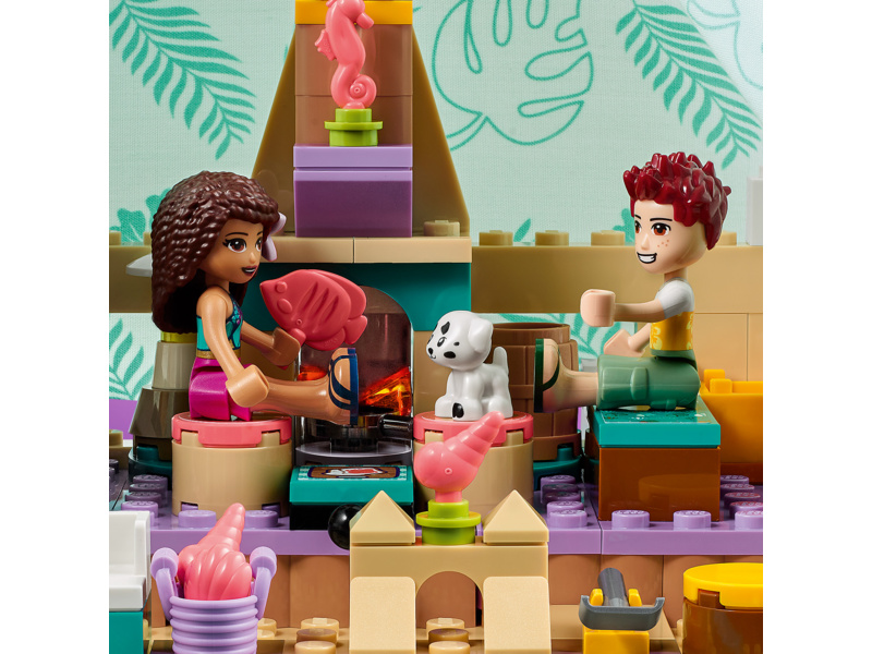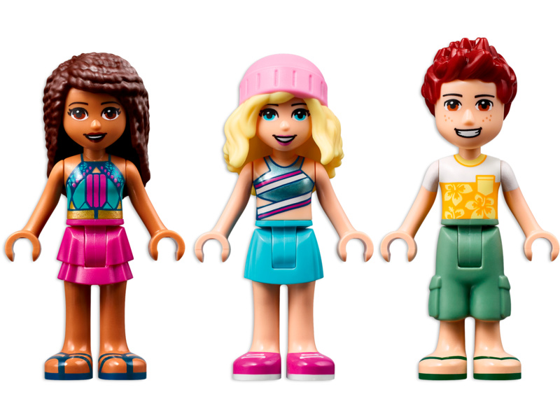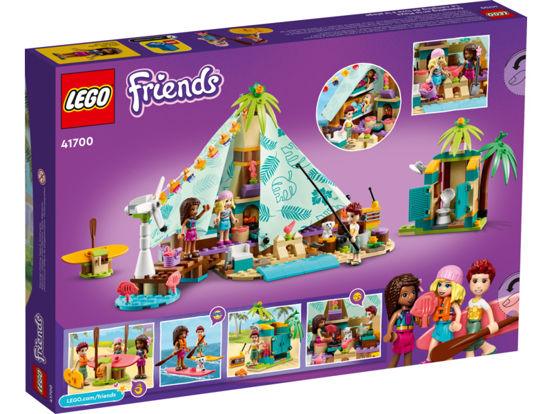 Sběratelská sada na motivy luxusního kempování obsahuje 2 paddleboardy pro postavy LEGO Friends, na nichž mohou prozkoumávat pobřeží a okolní přírodu se štěňátkem Pebble. Na souši mohou hledat mušle a stavět hrady z písku a poté se osvěžit ve venkovní sprše a na toaletě. K dispozici je molo pro rybaření. Svůj úlovek si pak mohou uvařit na vařiči ve stanu, okolo něhož se nachází pohodlná místa k sezení a palandy.