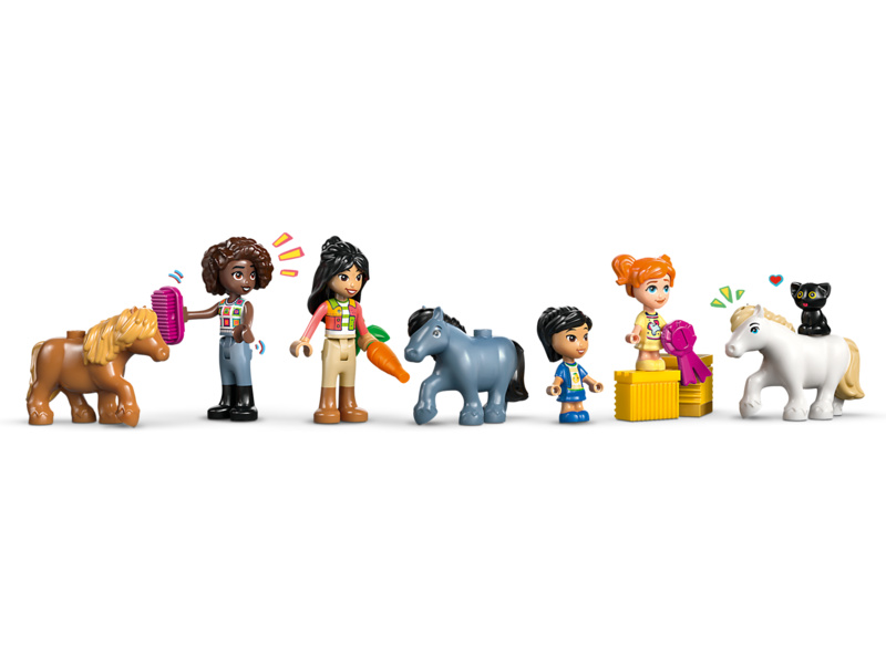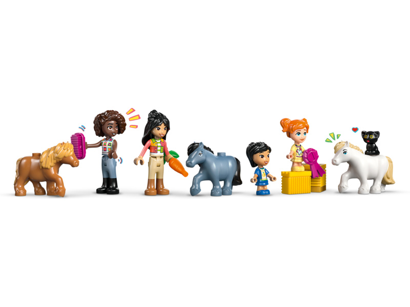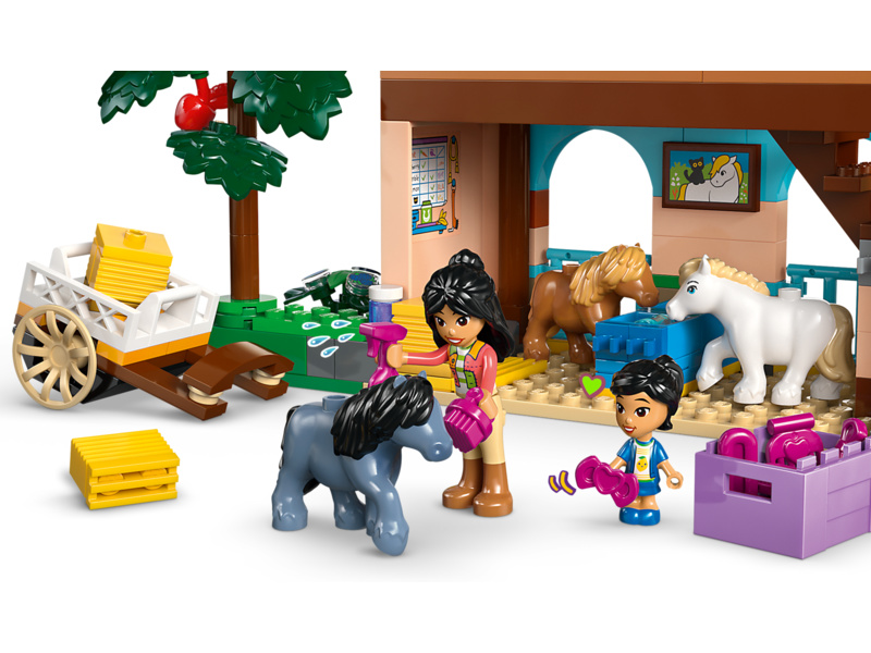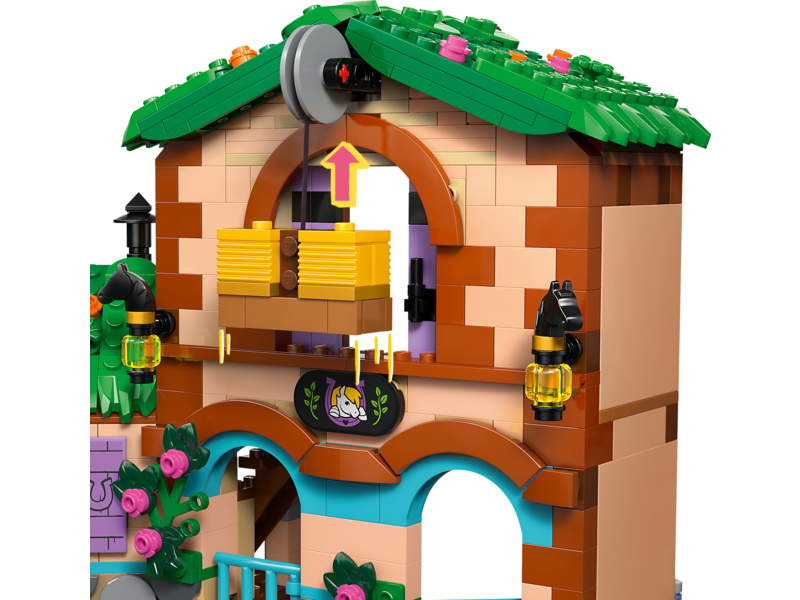 Děti se vydají na nekonečná dobrodružství s Aliyou, Liann, Victorií a Ellou. Hřebelcování a krmení 3 poníků bude spousta zábavy! Dokonce tu najdete i funkční výtah na seno, s jehož pomocí přemístíte balíky sena do seníku nebo na vozík. V ranči je útulný obývací prostor a seník, ve kterém budou kamarádky spát nad stájí – splněný sen každého milovníka koní!