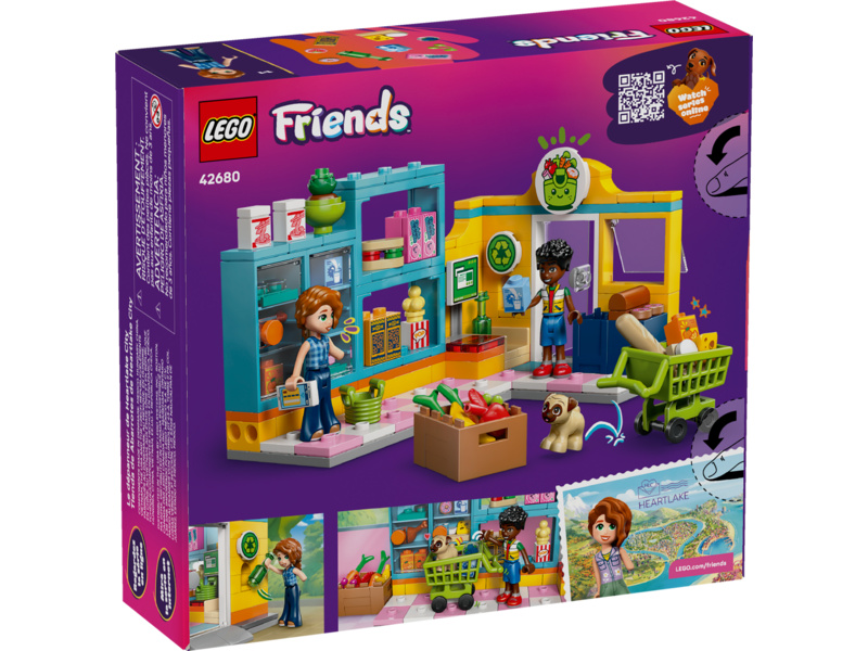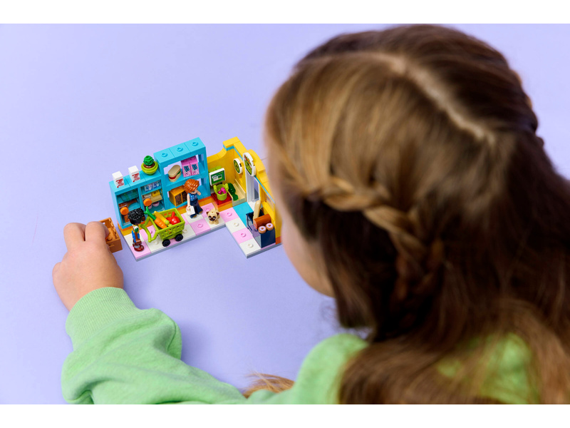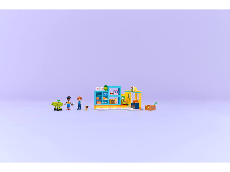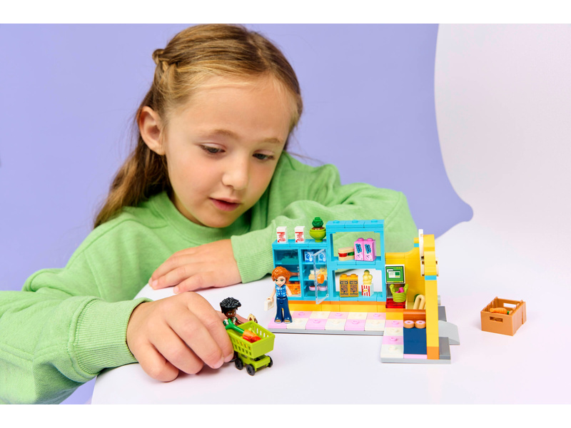 Inspirujte děti ke hře na nakupování v obchodě s potravinami se stavebnicí Samoobsluha v městečku Heartlake (42680). Holky a kluci od 5 let si s touto propracovanou stavebnicí pro děti mohou vymýšlet vlastní zábavné příběhy. Součástí je spousta realistických prvků, jako regály s potravinami, nákupní vozík, košík, recyklační stanoviště a pokladna.