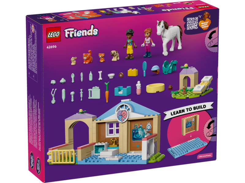 Povzbuďte děti od 4 let, aby vytvářely vlastní příběhy se stavebnicí LEGO® Friends Veterinární klinika se zvířátky (42696) pro holky i kluky. Propracovaná stavebnice veterinární kliniky obsahuje vše, co předškoláci potřebují k hraní rolí a péči o zvířata. Součástí je koňská stáj, vyšetřovna, pelíšky pro zvířata, krmení, veterinární vybavení, hřiště pro zvířata a mnoho dalšího.
