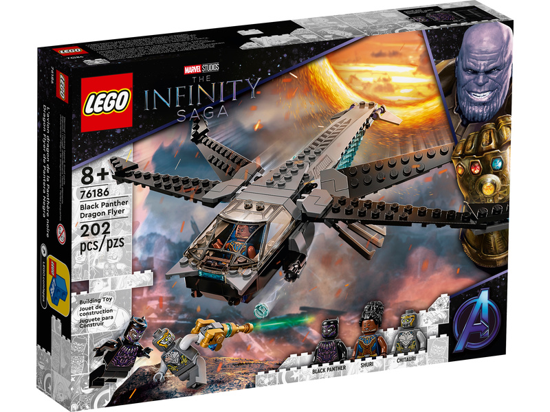 Se stavebnicí ikonického dračího letounu Black Panthera od LEGO® Marvel (76186) si mladí superhrdinové mohou přehrávat akci z filmu Avengers: Endgame.