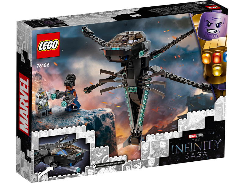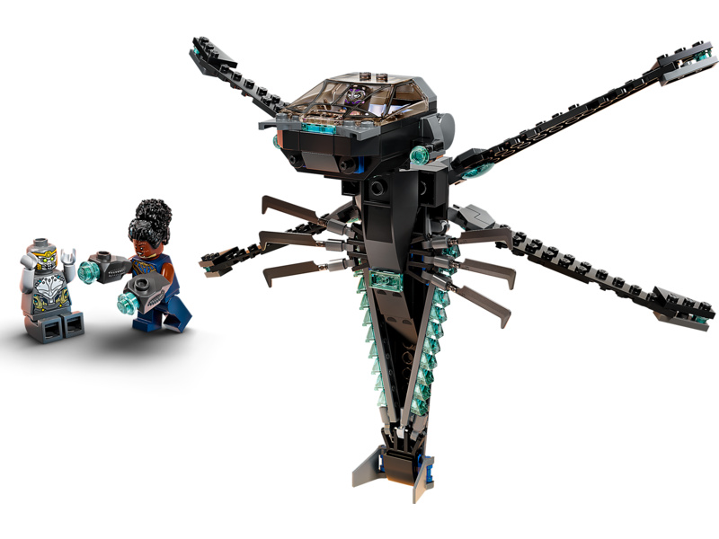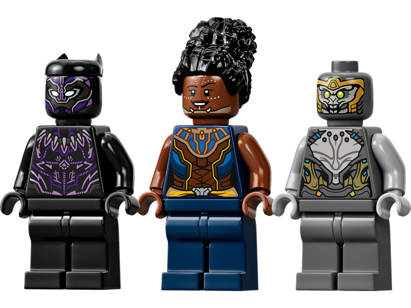 Autentická replika ikonického letounu Black Panthera poskytne dětem spoustu příležitostí k hraní. Úchvatný model bude také skvěle vypadat na výstavce. Futuristická stíhačka z Wakandy je vybavena 4 polohovatelnými křídly – která lze nasměrovat dopředu, dozadu, nahoru nebo dolů – 2 vystřelovači a otevíracím kokpitem, kde lze usadit minifigurku. Součástí stavebnice jsou 3 minifigurky, které zaručí, že o nápadité příběhy nebude nouze. Můžete se těšit na Black Panthera, jeho sestru Shuri a zlého válečníka Chitauri, který je vyzbrojen puškou.