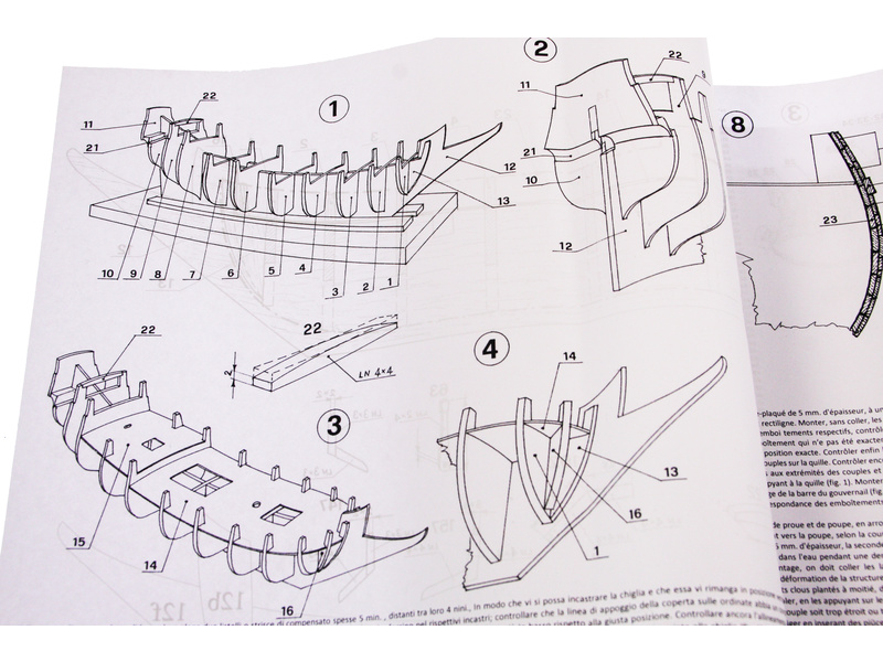 Praktická sada 12 svorek s držáky usnadňující plaňkování trupů dřevěných modelů lodí. Svěrky umožňují bezpečné a přesné přichycení lišty ke každému žebru během lepení.