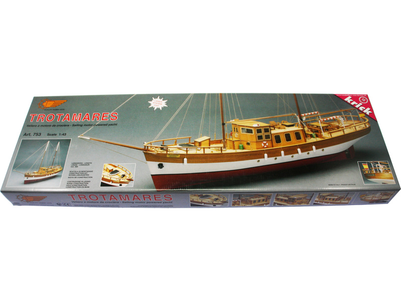 Stavebnice neplovoucího modelu jachty Mantua Model Trotamares v měřítku 1:47 a délce 800 mm, která byla postavena ve Španělsku v roce 1958. Dnes kotví v docích Montecarlo nebo se plaví v tyrkysových vodách Francouzské riviéry. Kit obsahuje dřevěné díly, kovové odlitky dekorací a podrobné stavení plány.