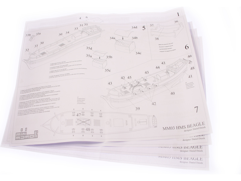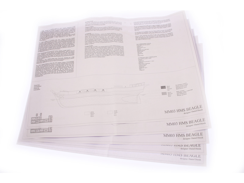 Model lodi H.M.S. Beagle, z řady Mini Mamoli, v měřítku 1:121. Loď britského královského námořnictva působila nejdříve jako pobřežní stráž, později byla po odstranění děl použita k vědeckým účelům v Indickém a Tichém oceánu. Vhodné pro začínající modeláře. Model lze sestavit během několika hodin. Vhodné od 14 let.