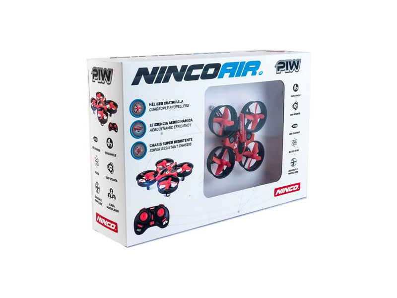 Malý RC model dronu Nincoair Piw od společnosti Ninco. Srdcem tohoto stroje je šestiosý gyroskop díky kterému má dron skvělou stabilitu letu a lze jej přesné řídit. Při rozměrech 7,5 x 7,5 centimetrů, je dron velmi obratný. Svižný let zajišťují stejnosměrné motory, které roztáčí čtyřlisté vrtule. Dron zvládá 3D akrobacii v podobě 360°obratů (přemety). Má také funkci automatického návratu k ovladači. Je u něj možné nastavit dvě rychlosti letu, a to 60% a nebo 100%. Rám dronu je velmi odolný a současně chrání vrtule před poškozením a rovněž děti před úrazem. Model je určen do interiéru.