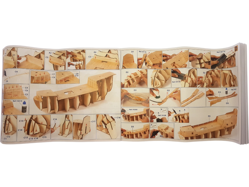 Praktická sada 12 svorek s držáky usnadňující plaňkování trupů dřevěných modelů lodí. Svěrky umožňují bezpečné a přesné přichycení lišty ke každému žebru během lepení.