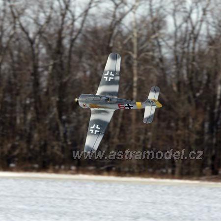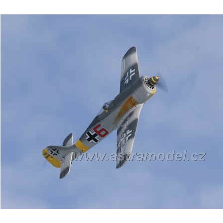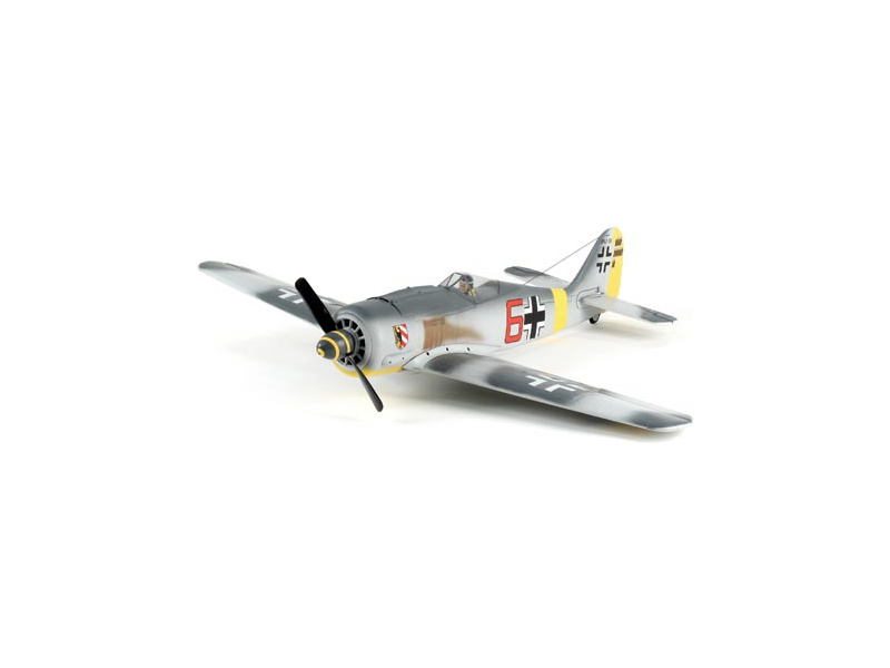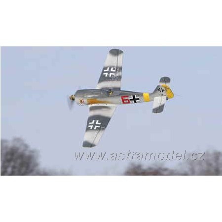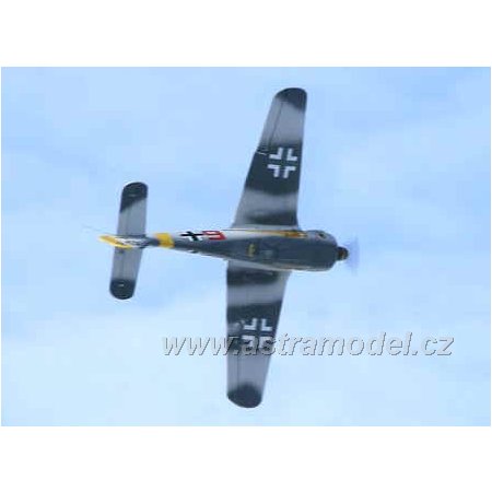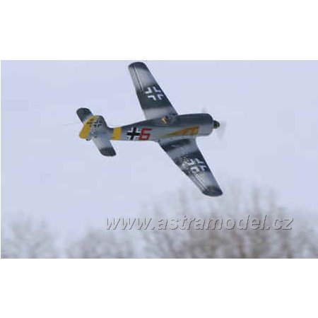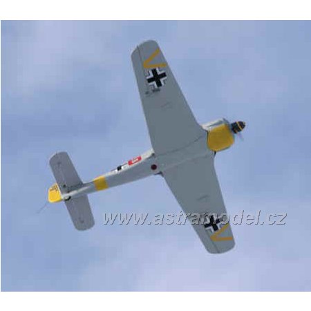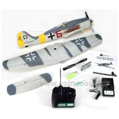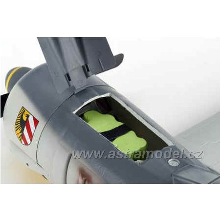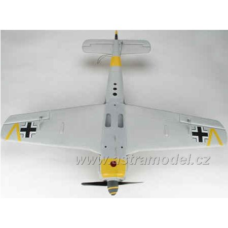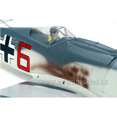 Hotová polomaketa známého německého bojového letadla pro sportovní polétání s 3-kanálovým proporcionálním řízením v FM pásmu 27MHz je logickým krokem při přechodu na větší modely letadel. Letový software umožňuje dva přístupy v řízení modelu. Režim A pomáhá začátečníkům - režim B umožní vychutnat manévrovatelnost modelu při provádění akrobatických obratů jako výkruty, kubánské osmy, bojové zatáčky.... Přijímač modelu je vybaven třemi přepínači pro systém řízení letu, pro systém ovládání ocasních ploch a pro možnost napájení LiPol akumulátory. Doba letu modelu se pohybuje okolo 15 minut na jedno nabití se standardními akumulátory. Vše co je potřebné pro úspěšné létání s modelem je obsahem balení - není potřeba nic dokupovat. Model je z výroby nabarven kamuflážními barvami a dekorován. RC souprava s přijímačem, regulátorem a servy je po vymontování z modelu je dále využitelná v dalších modelech s motorem třídy 370 - 480. Náhradní díly skladem.