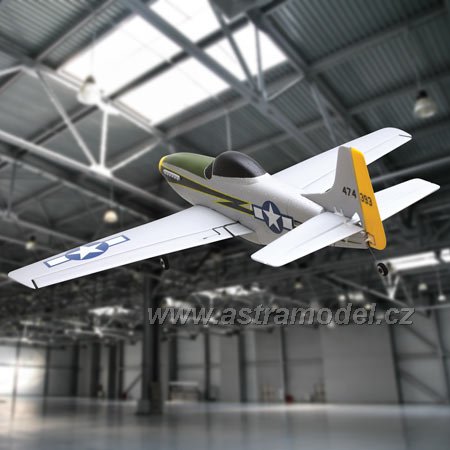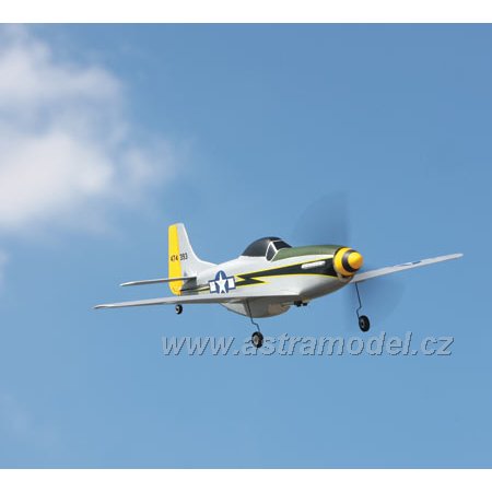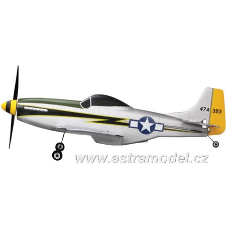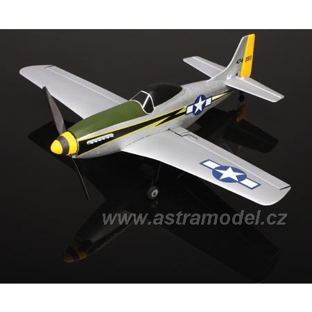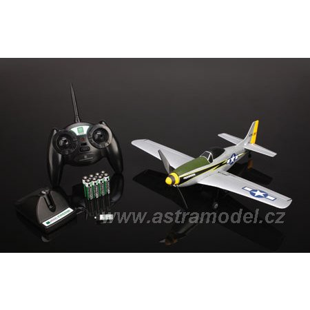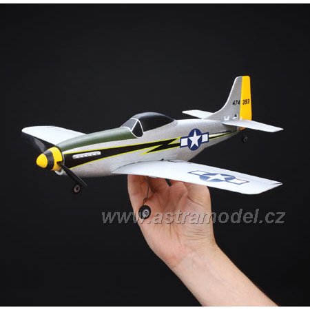Rozpětí pouhých 363 mm a hmotnost 34,6 g to je žhavá novinka od Parkzone. P-51 je nejmenší ultra mikro™ akrobatický model pro zkušené piloty s DSM2™ technologií a 6-ti kanálovým super nanolite přijímačem. Letadlo je zpracováno do nejmenších detailů, atraktivní barevné zpracování ve stylu 118. bojové letky. O letových vlastnostech se můžete přesvědčit ve videu v sekci multimédia. Model je kompletně sestaven. Stačí vložit AA baterie, které jsou obsahem balení, do vysílače a nabíječe, nabít LiPol akumulátor a můžete létat. Okamžitě, bez jakékoli práce navíc. Set obsahuje Li-Pol baterii 120 mAh/14C s nabíječem.