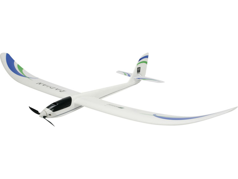 Elektro větroň Radian je určen pro začátečníky s RC modely. Je vyroben z materiálu Z-Foam metodou vypěnění do formy. Zvolený profil křídla zajišťuje výborné letové vlastnosti a pomalý let. Radian RTF je dodáván sestavený s nainstalovaným střídavým motorem, elektronickým regulátorem, servy, LiPol baterií s nabíječem, RC vysílačem Spektrum DX5e a nainstalovaným přijímačem.,