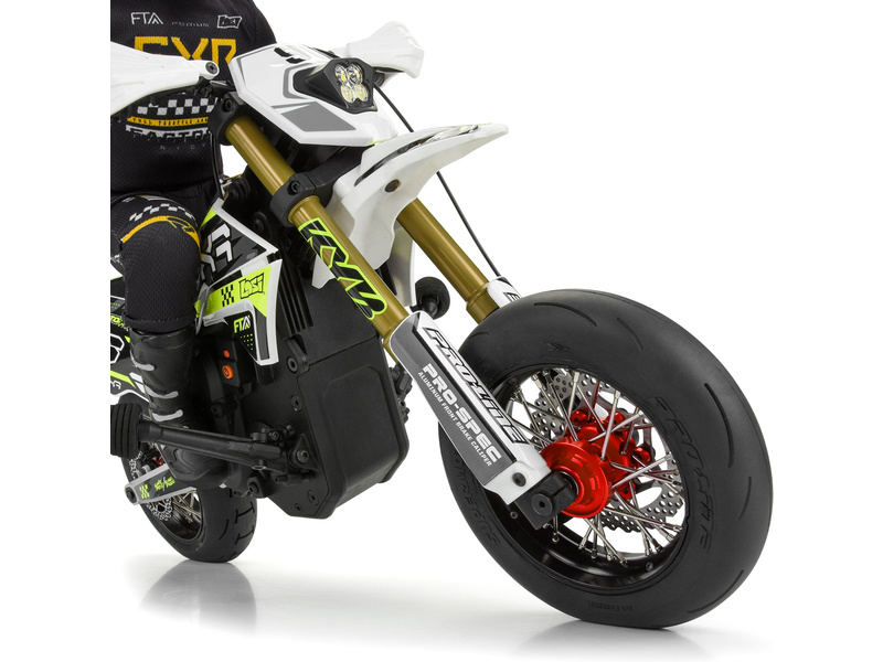 RC model motorky Losi Promoto-SM třídy supermoto v měřítku 1:4, která vypadá a funguje stejně jako skutečná. Střídavý pohon udělí rychlost až 65 km/h, vylepšená funkční přední brzda, vysoce realistické zpracování. V balení je vše potřebné včetně akumulátoru a nabíječe.