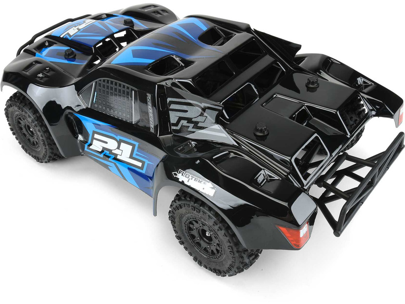 Pro-Line černá karosérie Flo-Tek Fusion Black, pro RC modely aut Short Course v měřítku 1:10, rozvor 323mm, délka 546mm, šířka 235mm. Vyrobeno z odolného lexanu.