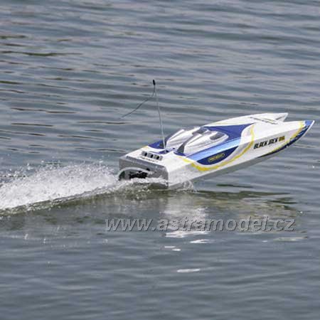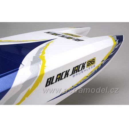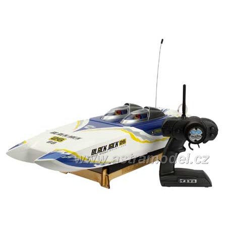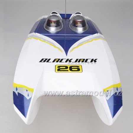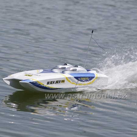 Blackjack 26 EP RTR s pohonem střídavým vodou chlazeným motorem. S neuvěřitelně vysokým výkonem a rychlostí vyrazí tento rychlík na hladinu a zanechá daleko za sebou všechny ostatní elektry. Je k nerozeznání od lodi se spalovacím motorem, výborně akceleruje ze zatáčky a má vysokou stabilitu.